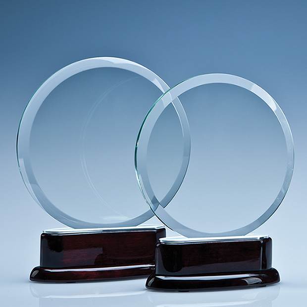 This elegant award perfectly combines 3 different materials, the 15.5cm crystal circle is bonded onto a brushed aluminium section and mounted onto a rosewood piano finish wood base. The glass circle has a large engraving area that can be personalised with any crest, logo or wording to create an award that is sure to take pride of place when put on display at home or at work.