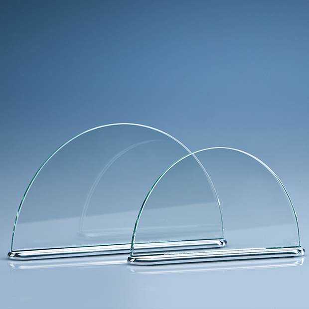 NOT SUITABLE FOR UV & CELEBRATION APPLICATIONS An ultra stylish and modern looking award which perfectly combines a crystal Half Moon with an aluminium base. They are available in 3 sizes and are ideal recognition, achievement or incentive gifts. They can be personalised with any crest, logo or wording to create an award that is sure to take pride of place when put on display at home or at work.