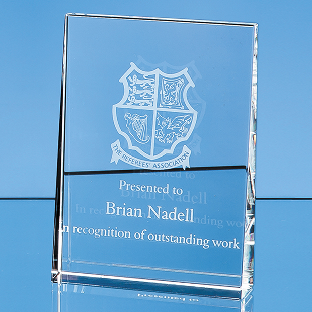 The 12cm Vertical Wedge Award is simple in design yet very stylish and is produced from the finest quality optical crystal. There is a generous area that can be engraved with a crest, logo or message to create an award that is sure to be treasured by the recipient. The award is supplied in a foam lined presentation box.
