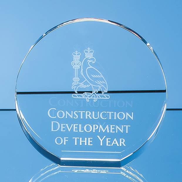 Crafted in pure optical crystal this stunning contemporary round free-standing award comes in three sizes 10cm 13cm shown and 15.5cm It is ideal as a standalone presentation recognition or award but perfect also for 1st 2nd and 3rd place achievement whether sporting academic or corporate. With a generous area to engrave a crest company logo or message it comes in its own foam lined presentation box.