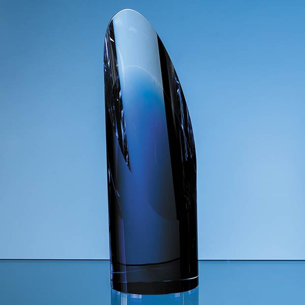 Crafted in flawless clear and sapphire optical crystal this cylindrical award has a sliced front effect leaving a generous space for engraving a crest company logo or message. Available in three sizes 15cm 18.5cm and 23cm shown making it ideal to use as a standalone presentation recognition or award but also for 1st 2nd and 3rd place achievement whether sporting academic or corporate. Plus it comes in its own foam lined presentation box.