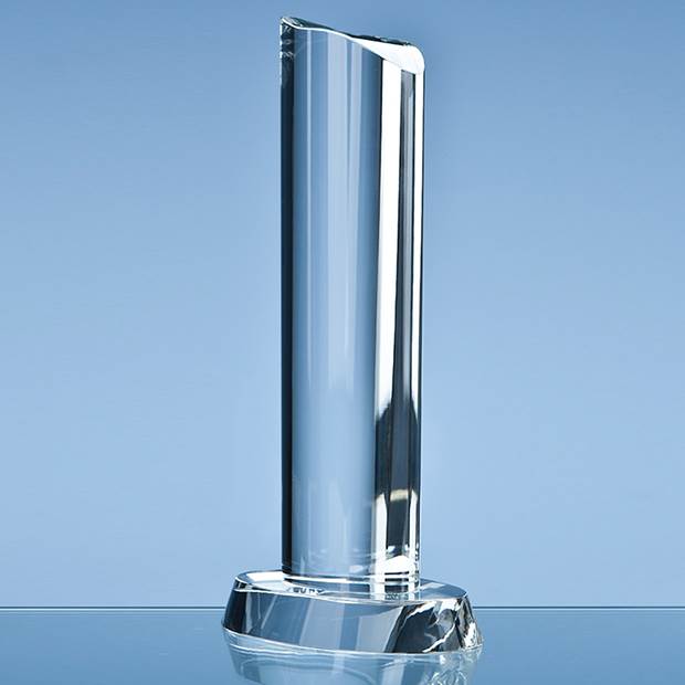 The 25.5cm x 7cm x 4cm oval column is hand crafted out of perfectly clear optical crystal and mounted onto a bevel edged oval base. They are available in 3 sizes and can be personalised with any crest, logo or wording to create an award that is sure to take pride of place when put on display at home or at work. They are ideal recognition, achievement or incentive gifts and are supplied in a black foam lined presentation box.