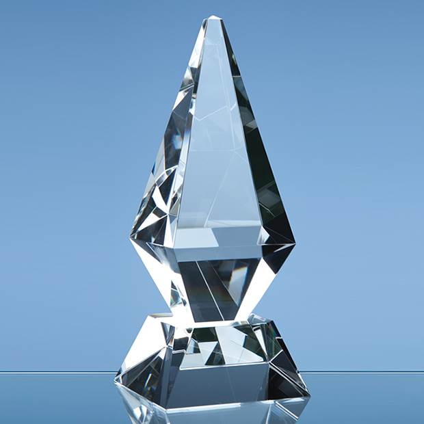 The stunning Glacier Award is hand crafted out of perfectly clear optical crystal. It is available in 3 sizes and can be personalised with any crest, logo or wording to create an award that is sure to take pride of place when put on display at home or at work. It is an ideal recognition, achievement or incentive gift and is supplied in a black foam lined presentation box.