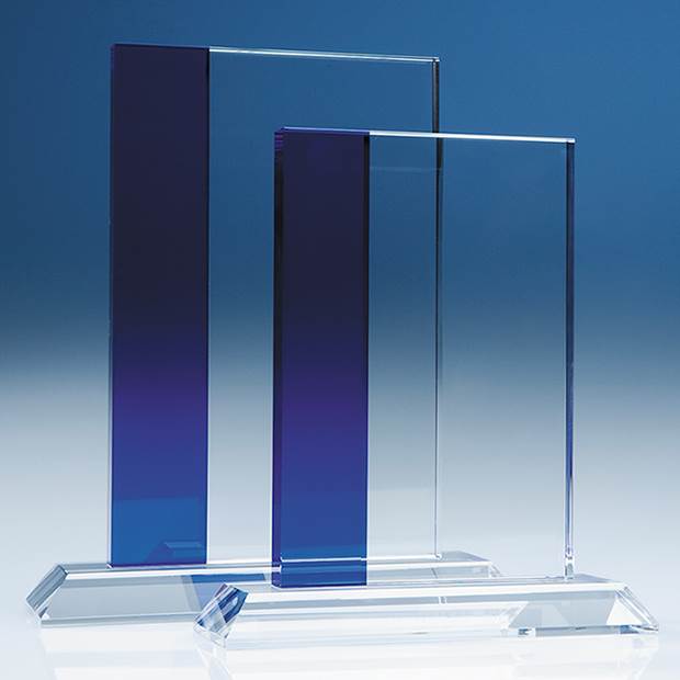 The stylish 19cm Blueline Rectable award perfectly combines clear optical crystal with a band of Sapphire Blue crystal. It is mounted onto a rectangular base to create an exquisite recognition, achievement or incentive gift. It can be personalised with any crest, logo or wording to create an award that is sure to take pride of place when put on display at home or at work. The award is supplied in a black foam lined presentation box.