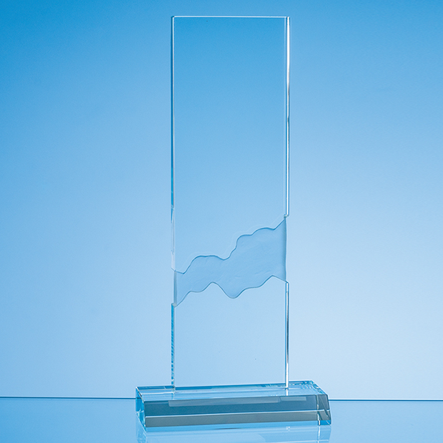 The 28cm Optical Crystal Deep Etched Mounted Rectangle Award commands attention with its stylish appearance featuring a frosted design on the reverse side of the upper part of the award. Meticulously hand crafted from the finest quality optical crystal the award captures the essence of success and embodies accomplishment. There is a generous engraving area that can be personalised with any crest, logo or wording to create an award that is sure to be treasured by the recipient. The award is supplied in a foam lined gift box.