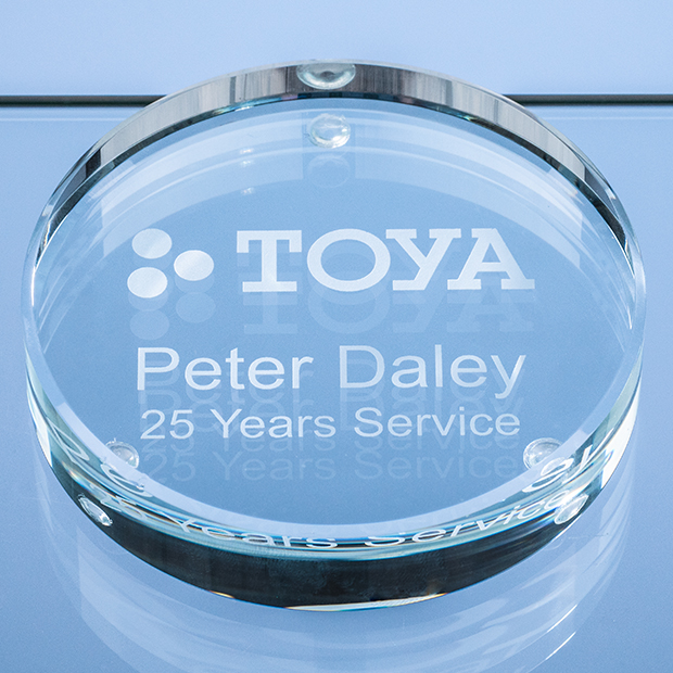 The 9cm round clear glass paperweight is fantastic value for money and has the benefit of being able to be decorated using a variety of different techniques including sandblast engraving, sub surface engraving or full colour printing. It would make an ideal personalised gift to a loved one to put on display at home or alternatively as a corporate giveaway to get your companies name and contact details onto your customer desk. It can be supplied in a blue gift box or a stylish black leatherette presentation box.