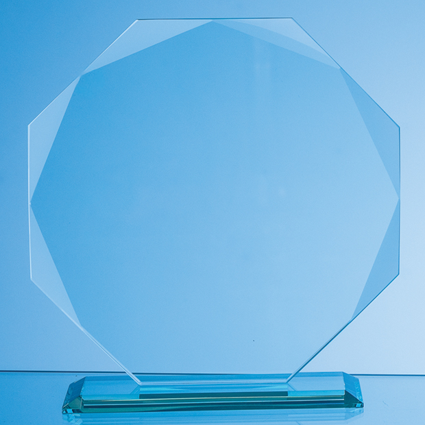 19cm x 19cm x 10mm Jade Glass Facetted Octagon Award